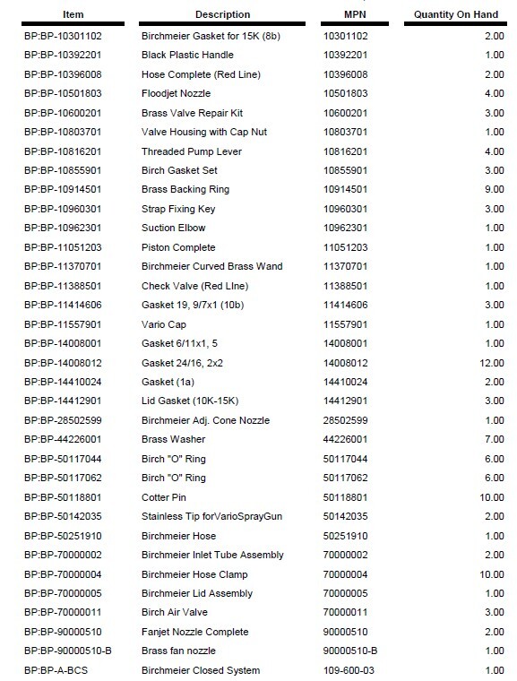 Estimate of Spare Parts included for FREE with purchase of this CLOSEOUT BackPack